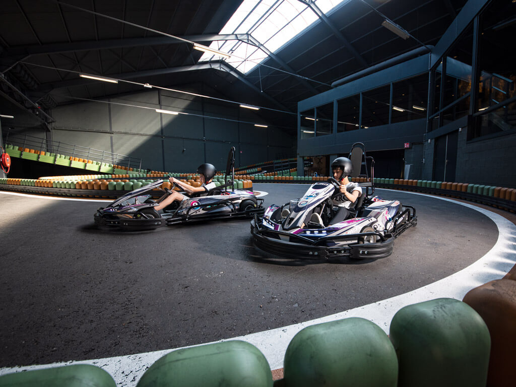 Karten over een multi-level kartbaan! Stap in en voel je een echte coureur. Versla je vrienden of collega’s en scheur over het parcours in een supersnelle elektrische kart. Rijd jij slim, durf jij flink op te trekken in de bochten en haal je als eerste de finish? Ontdek het op de te gekke kartbaan met meerdere verdiepingen.